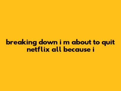 Breaking Down I’m About To Quit Netflix All Because I