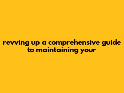 Revving Up: A Comprehensive Guide To Maintaining Your
